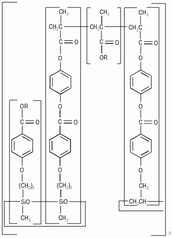 이 원료는 사이클로메티콘과 콜레스테릴메타크릴레이트를 포함하는 메타크릴릭애씨드의 에스터로 구성된 복합공중합체로, 주로 다음의 구조를 갖으며 R은 콜레스테릴 부분이다. |