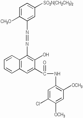 이 원료는 다음의 구조를 갖는 모노아조계 색소이다. |