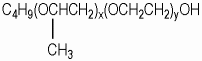 이 원료는 주로 다음의 구조를 갖는 부틸알코올의 폴리옥시프로필렌, 폴리옥시에칠렌에텔이다. x는 평균 12, y는 평균 161이다. |