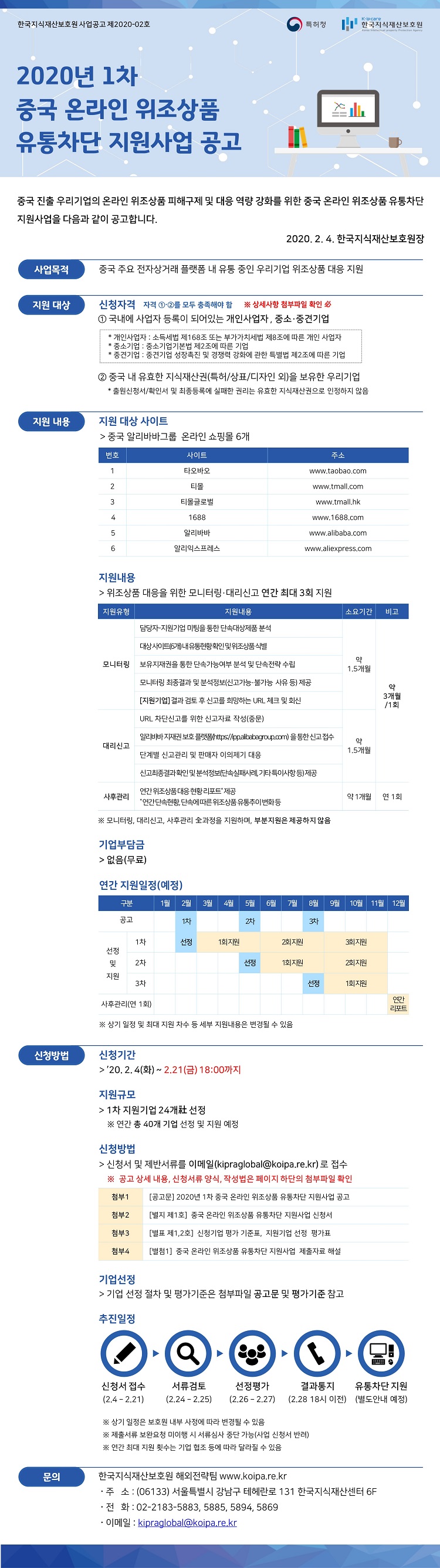 (한국지식재산보호원) '20년 1차 중국 온라인 위조상품 유통차단 지원사업 공고 안내