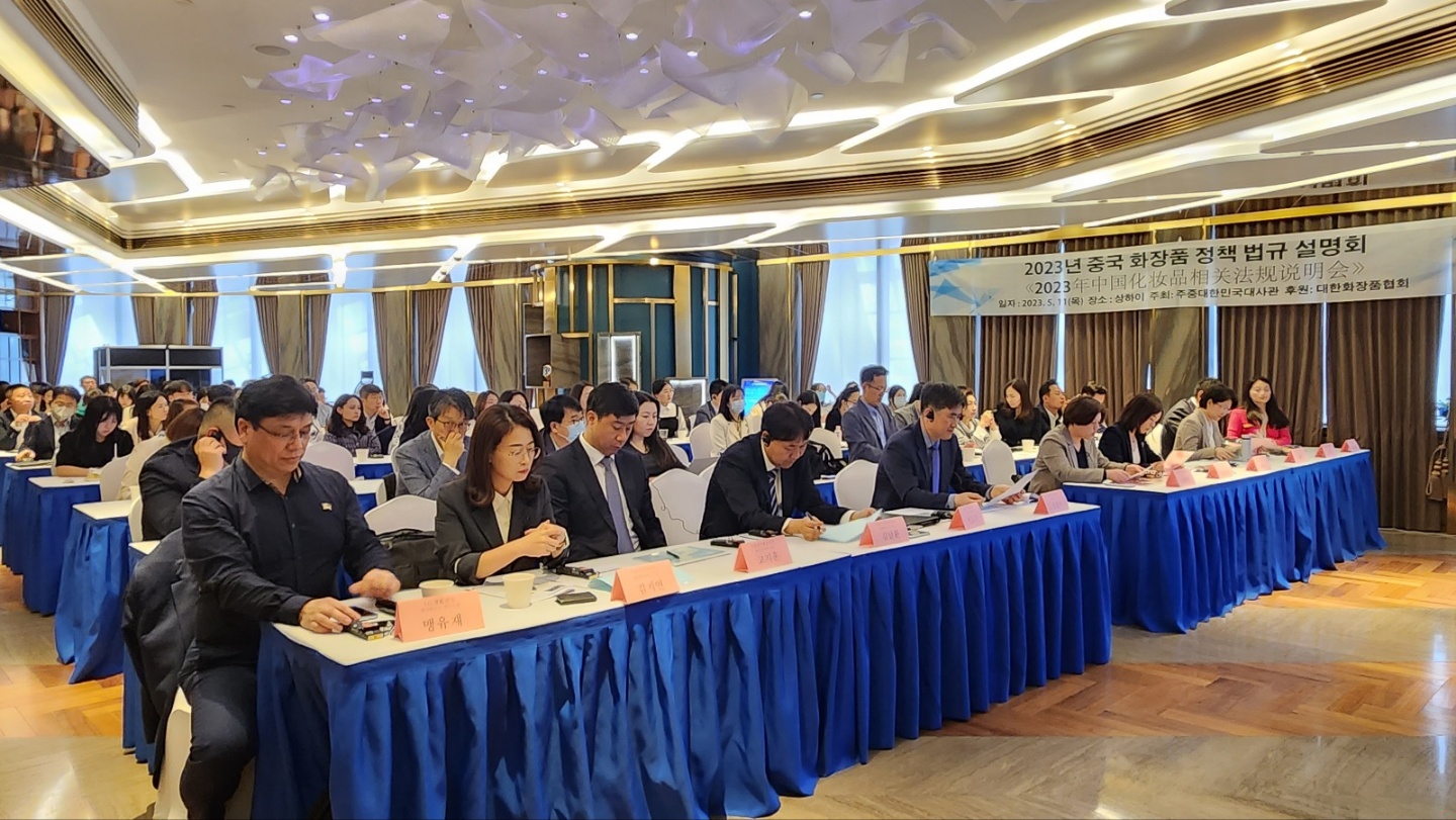 주중대한민국대사관 주최로 ”2023년 중국 화장품 정책 법규 설명회“를 개최하여 중국 상해 공무원과 한국 식약처를 초청하여 한국 화장품기업을 대상으로 변화된 중국의 법규제도와 한국 화장품 제도에 대해 설명하고 질의응답을 하는 시간(지난 5월 11일)을 가짐으로써 우리 업계에서는 ”중국 규정의 이해를 높이고, 중국 정부의 화장품 정책 방향에 대해 파악할 수 있어 많은 도움이 되었다.“고 전했다.