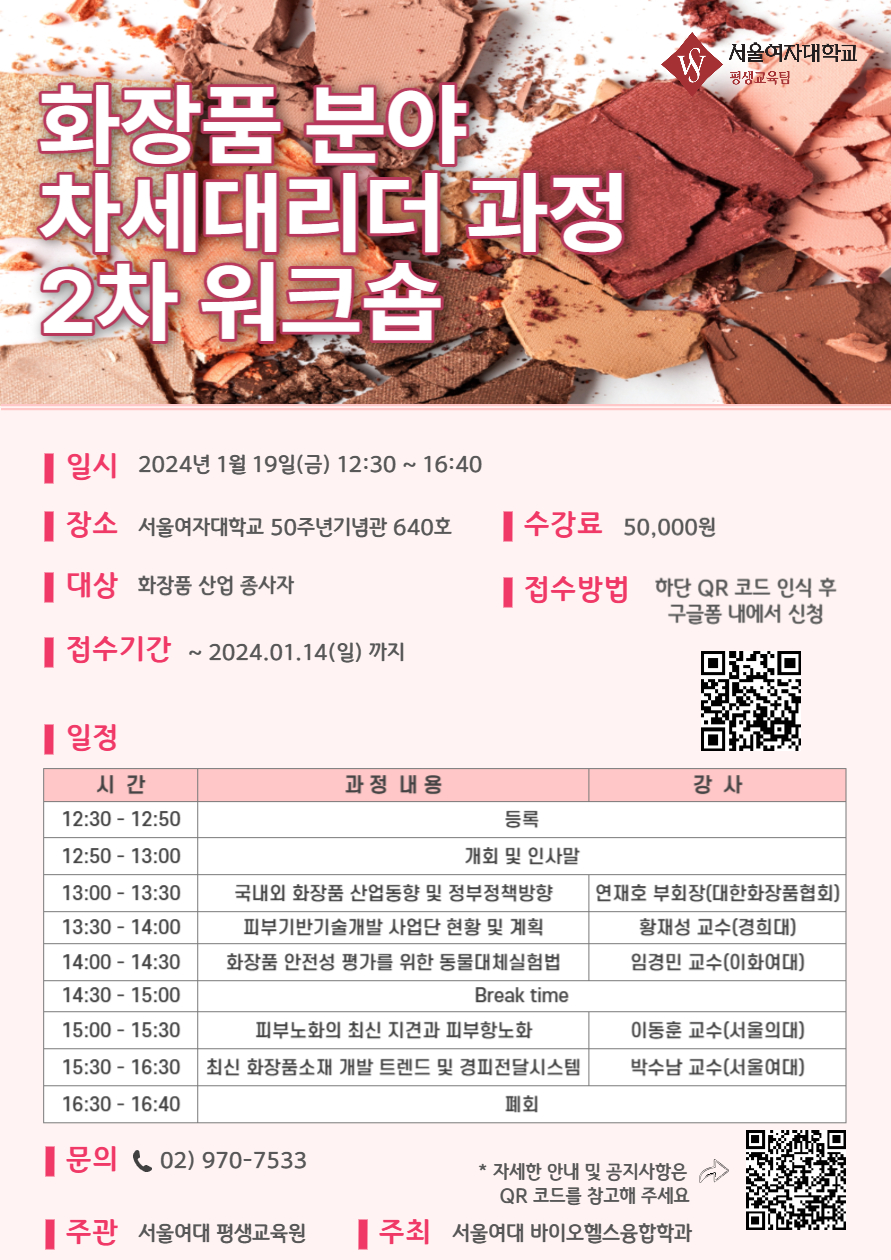 [서울여대] 「화장품 분야 차세대리더 과정 워크숍」개최 안내 (접수 ~'24.1.14. / 워크숍 : '24.1.19.)