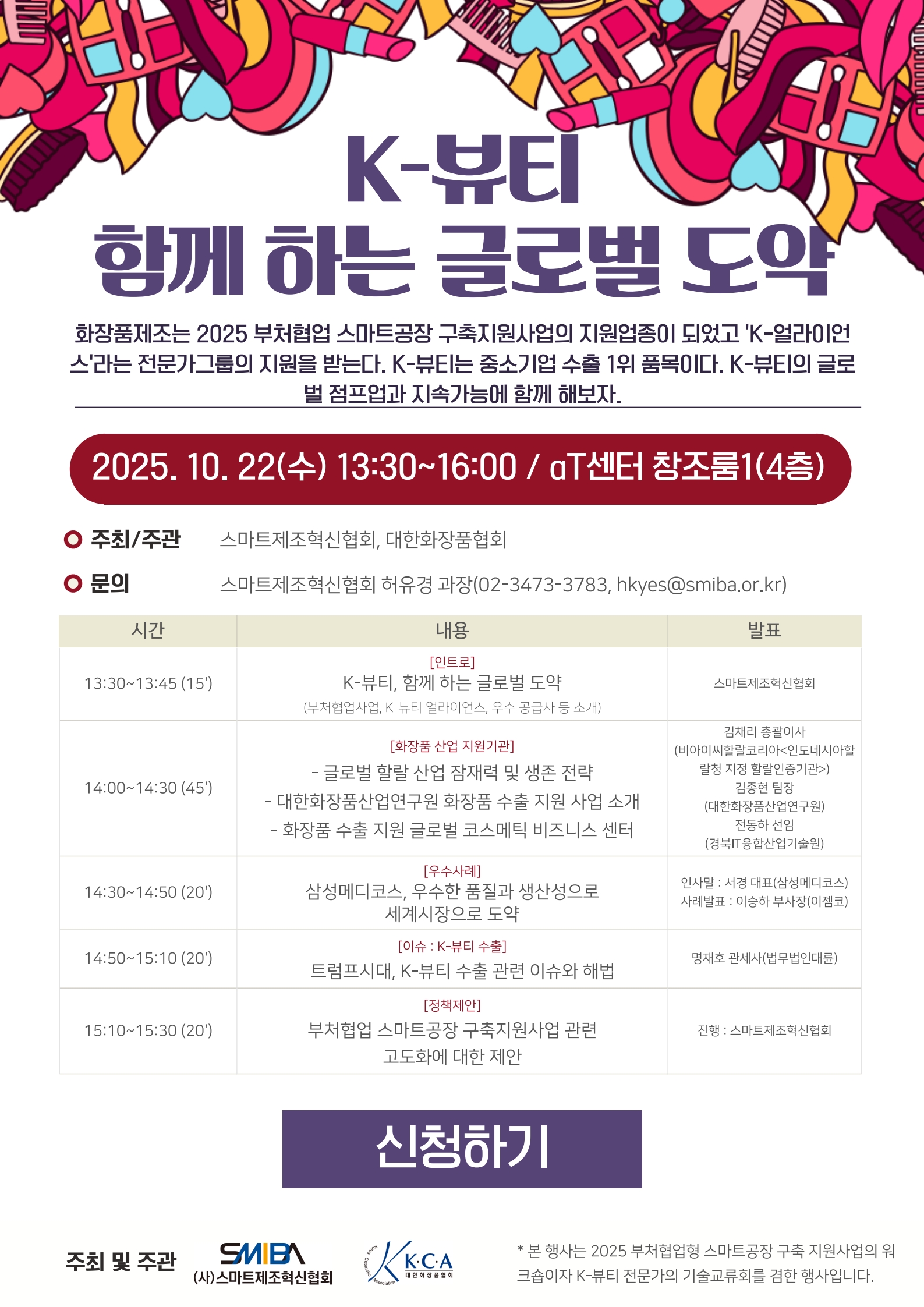 이 자리에 2025년 사업참가 도입사/공급사, K-뷰티 전문가, 화장품관련기업, 지원기관 등 관계자들을 모십니다.