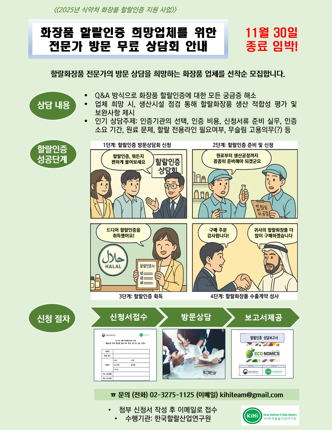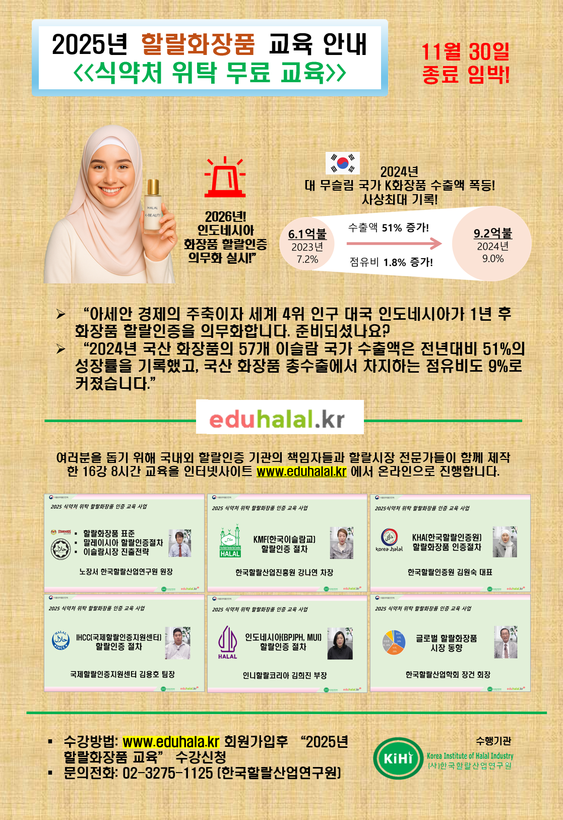 [한국할랄산업연구원]2025년 할랄화장품 무료 교육 및 할랄인증 희망업체 방문 상담회 안내