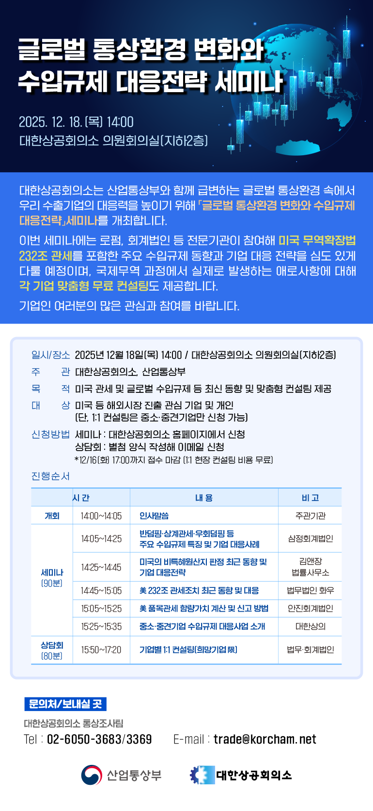 [산업통상부/대한상의] 글로벌 통상환경 변화와 수입규제 대응 전략 세미나 (12/18)