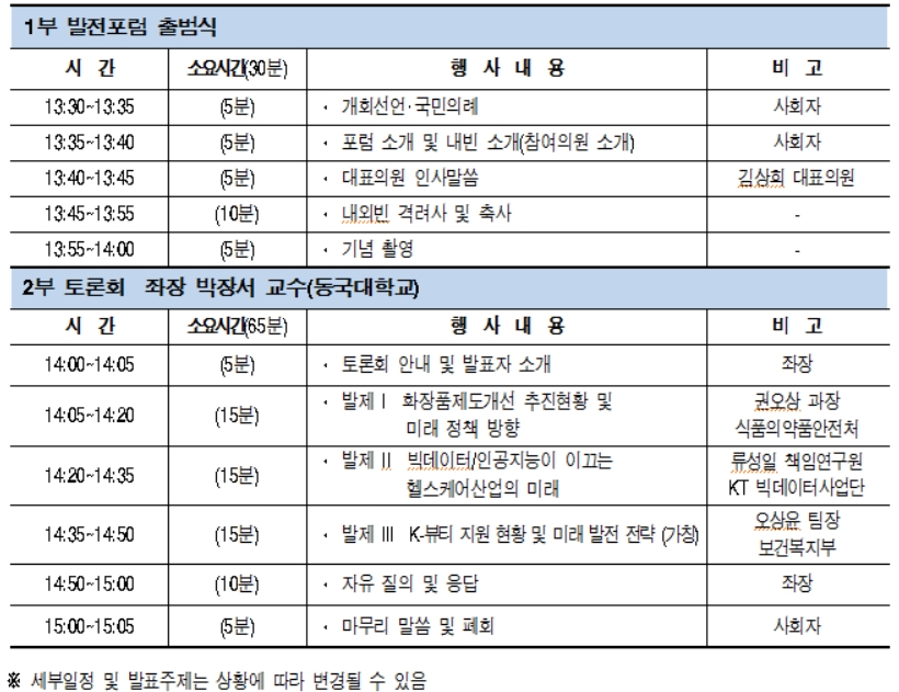붙임 : 국회 K-헬스&뷰티 미래발전을 위한 토론회 계획 1부. 끝.