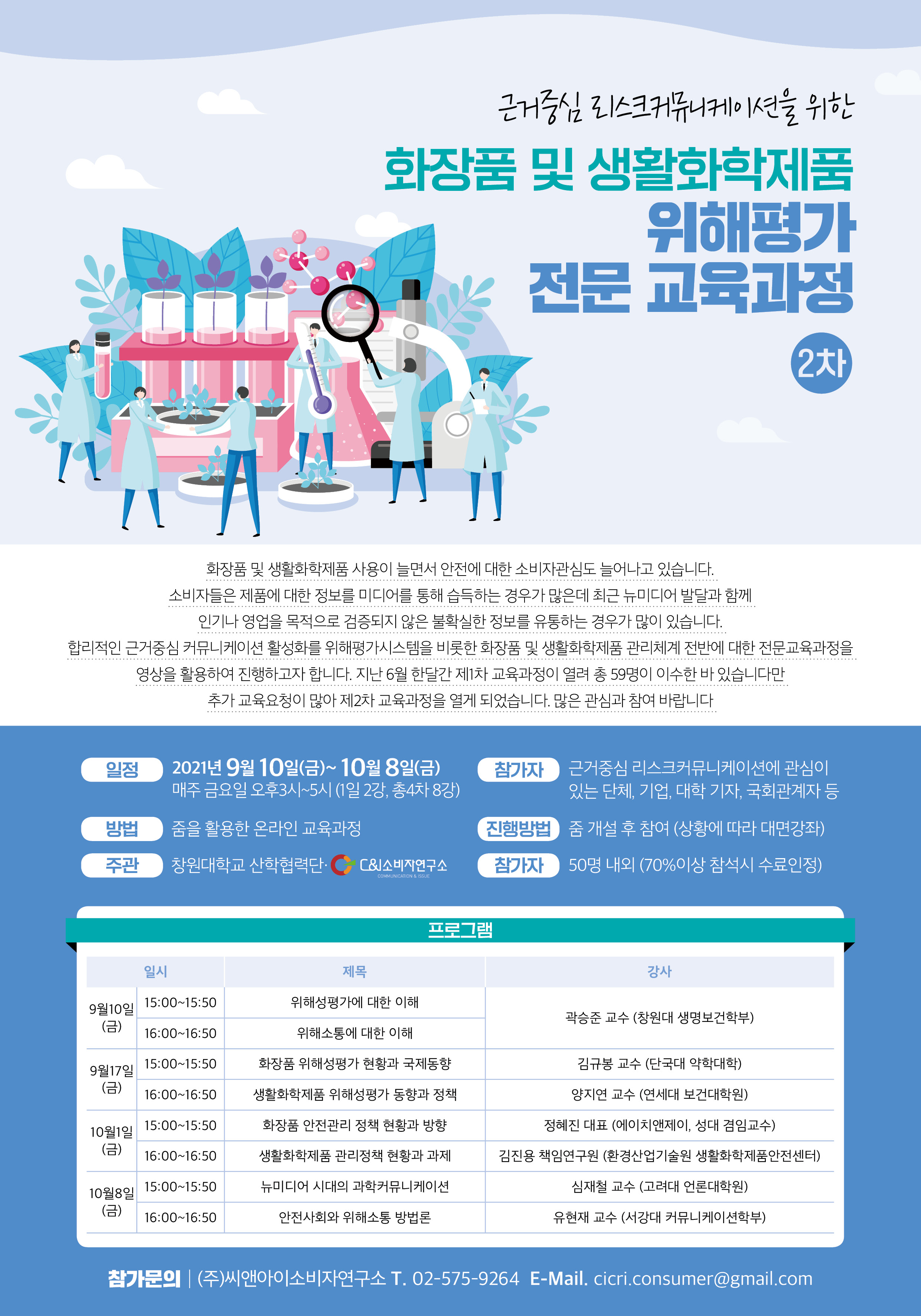 [씨앤아이소비자연구소] 근거중심 리스크커뮤니케이션을 위한 화장품 및 생활화학제품 위해평가 전문 교육과정 모집 안내