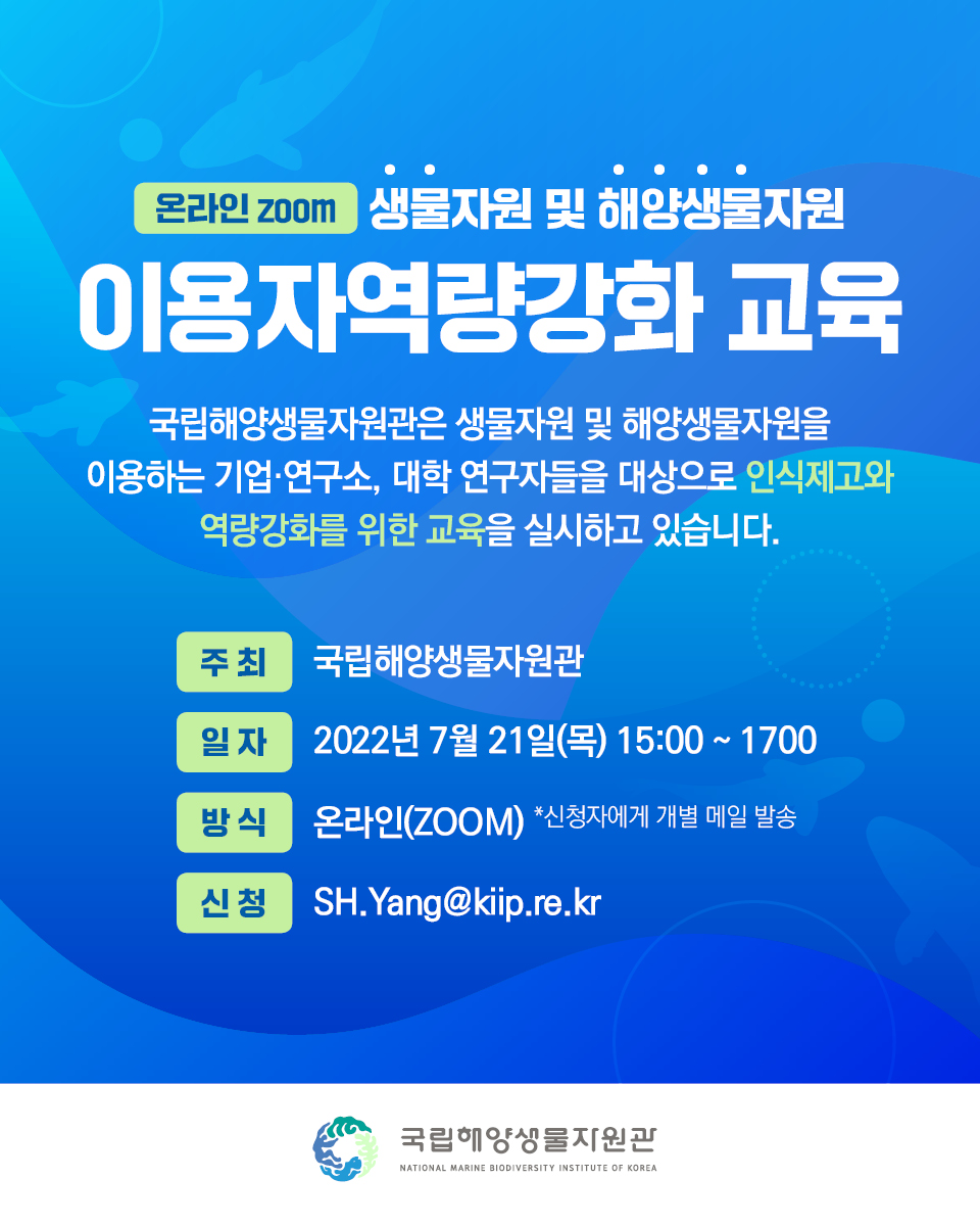 (한국지식재산연구원) 생물자원 및 해양생물자원 이용자 역량강화 교육 개최 안내