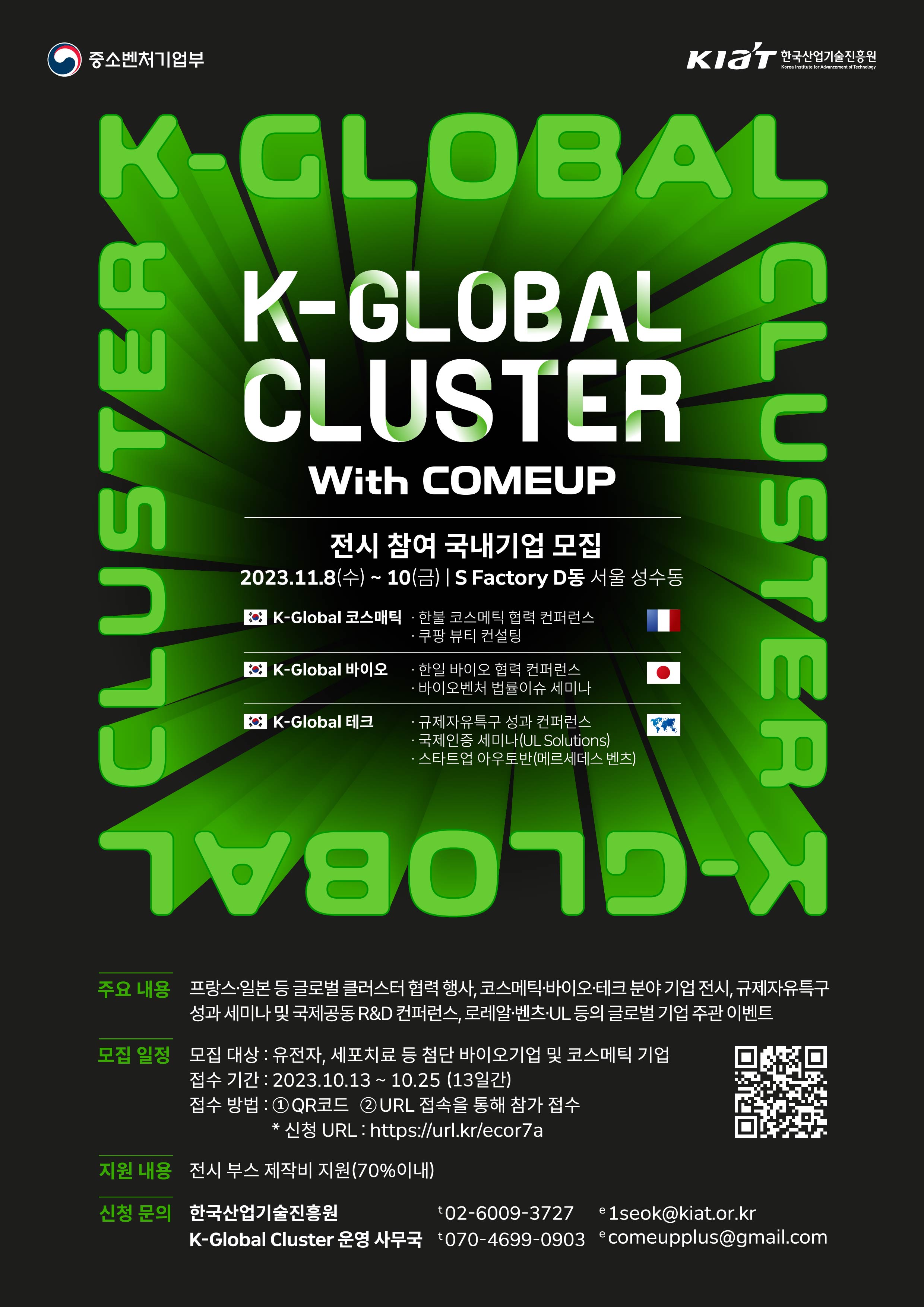 (중소벤처기업부/한국산업기술진흥원)K Global Cluster : With COMEUP 전시 참여 국내기업 모집 안내