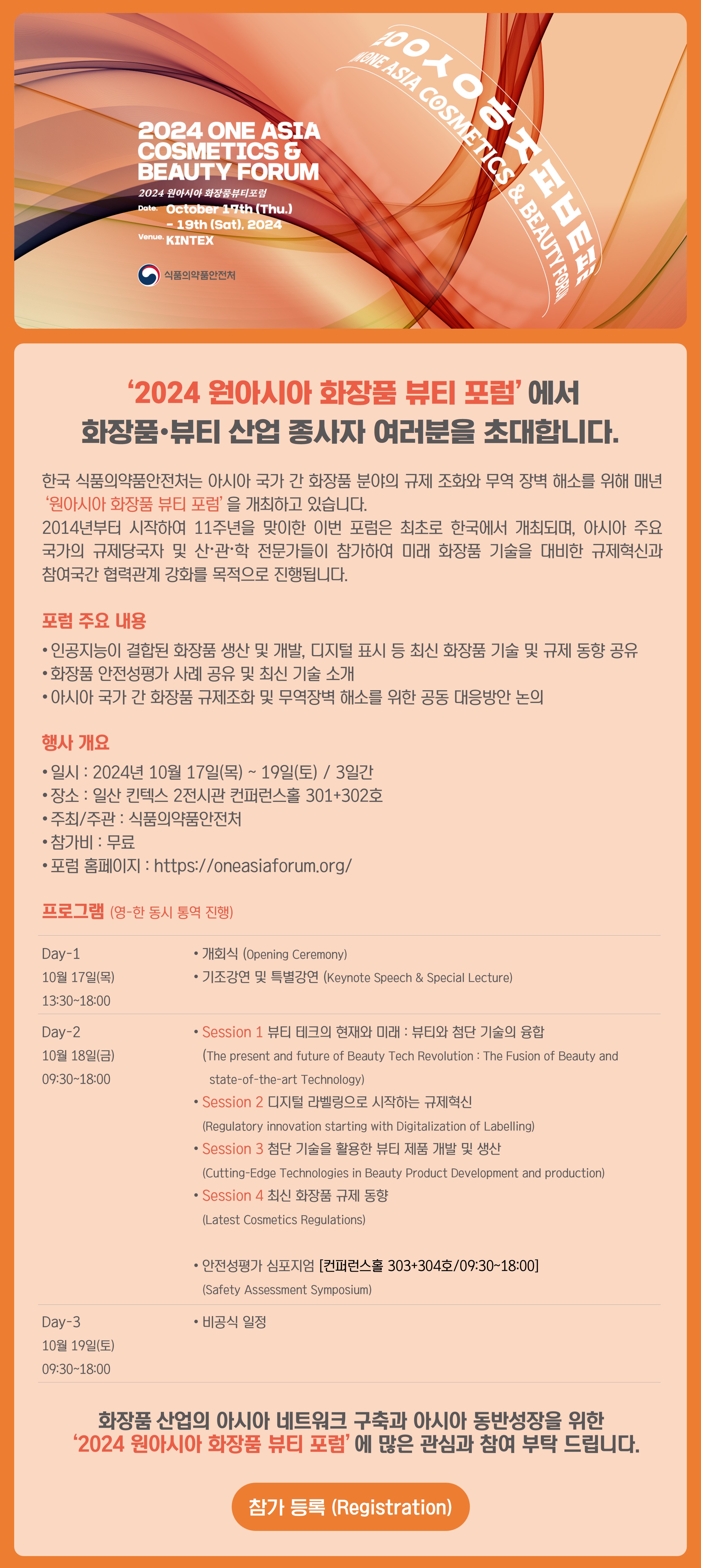 2024 원아시아 화장품 뷰티포럼 개최 및 참가등록 안내(10/17~10/19)