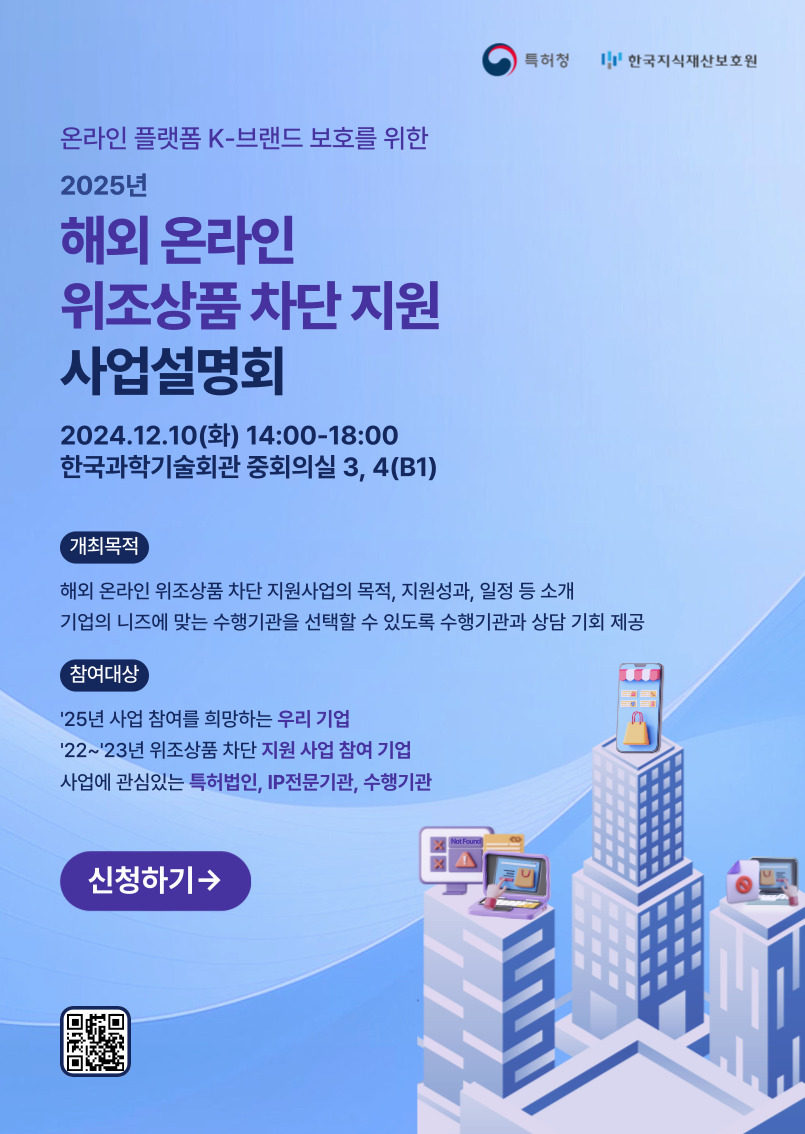 온라인 플랫폼 K-브랜드 보호를 위한 2025년 해외 온라인 위조상품 차단 지원 사업 설명회 (2024.12.10 (화) 개최)