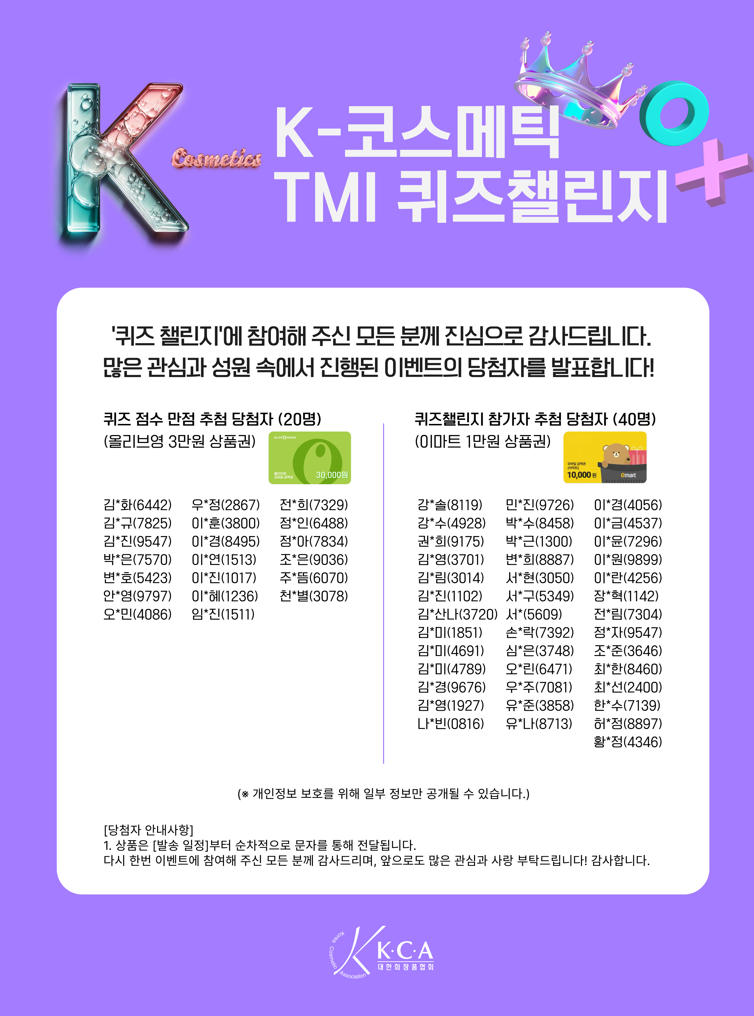 K-코스메틱, 퀴즈 챌린지 당첨자 공지