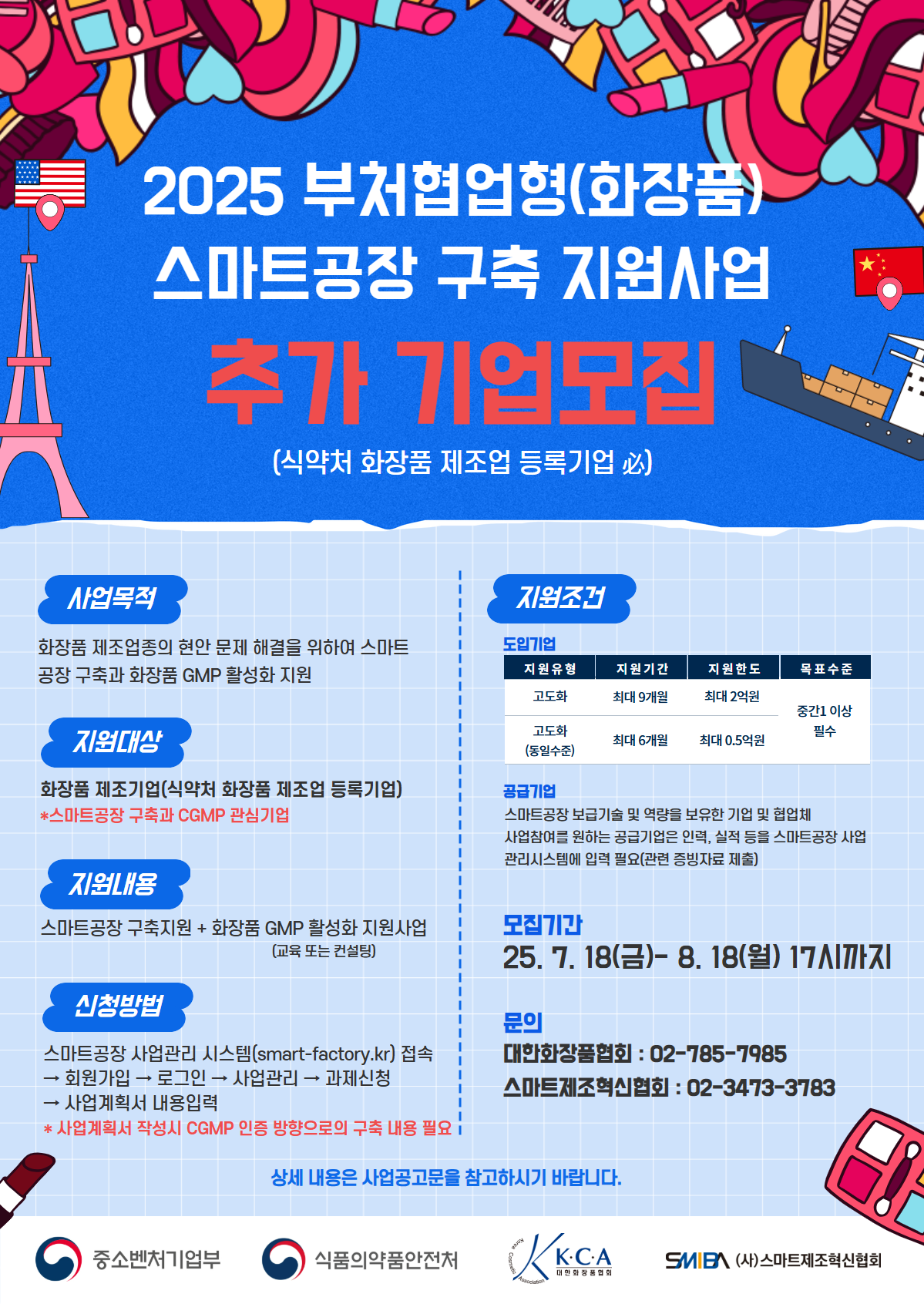 [추가모집]부처협업형(화장품제조) 스마트공장 구축지원사업 모집 안내(~8/18까지)