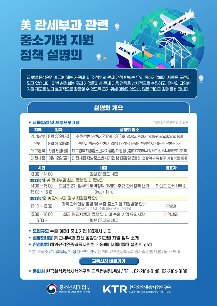 [한국화학융합시험연구원] 美 관세부과 관련 중소기업 지원 정책 설명회 개최 안내