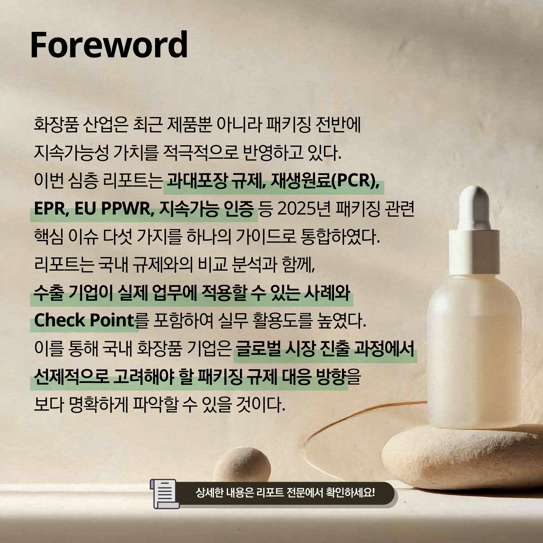 2025년 마지막 ESG 인사이트 리포트 <화장품 패키징 규제 통합 가이드> 입니다.
