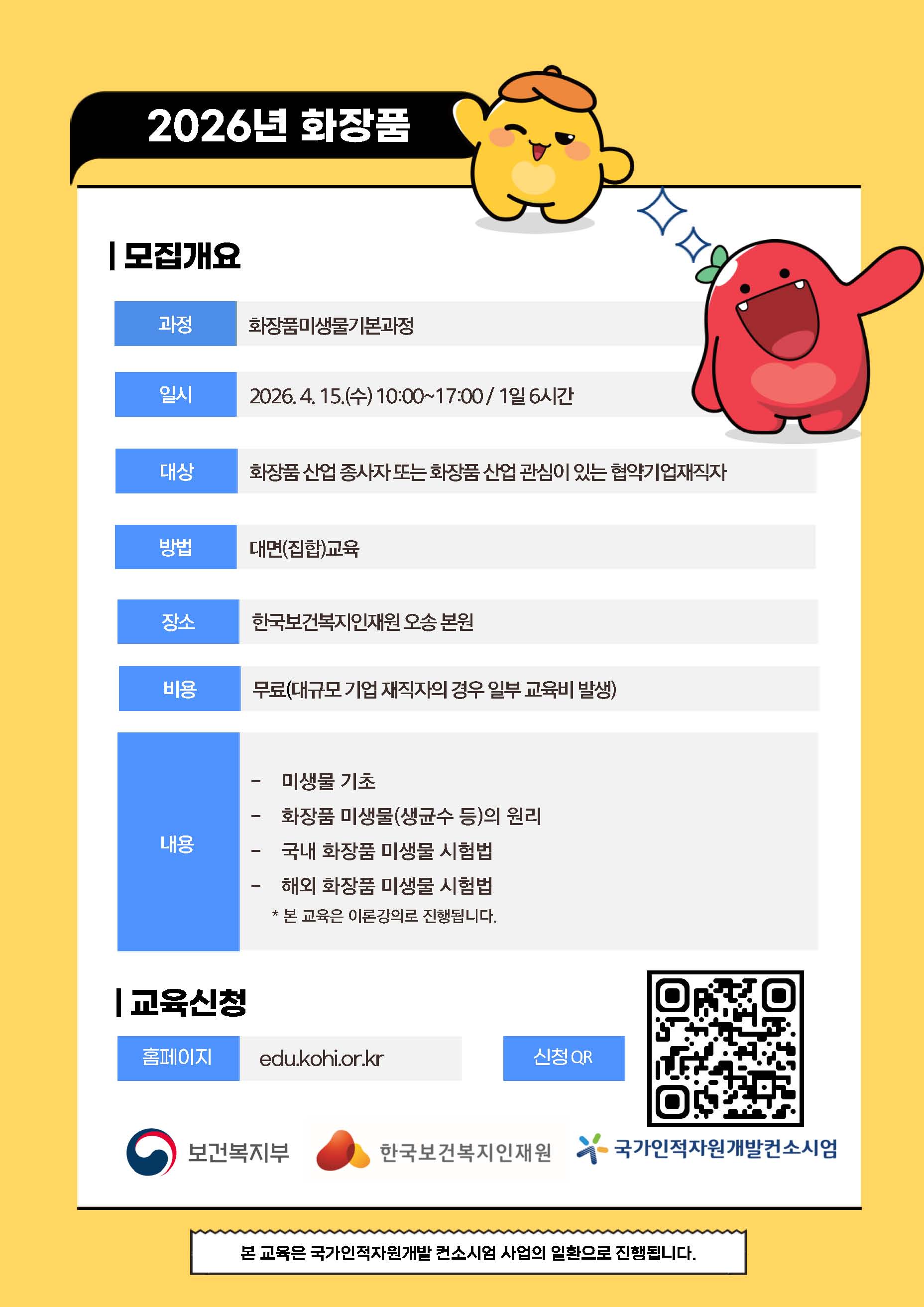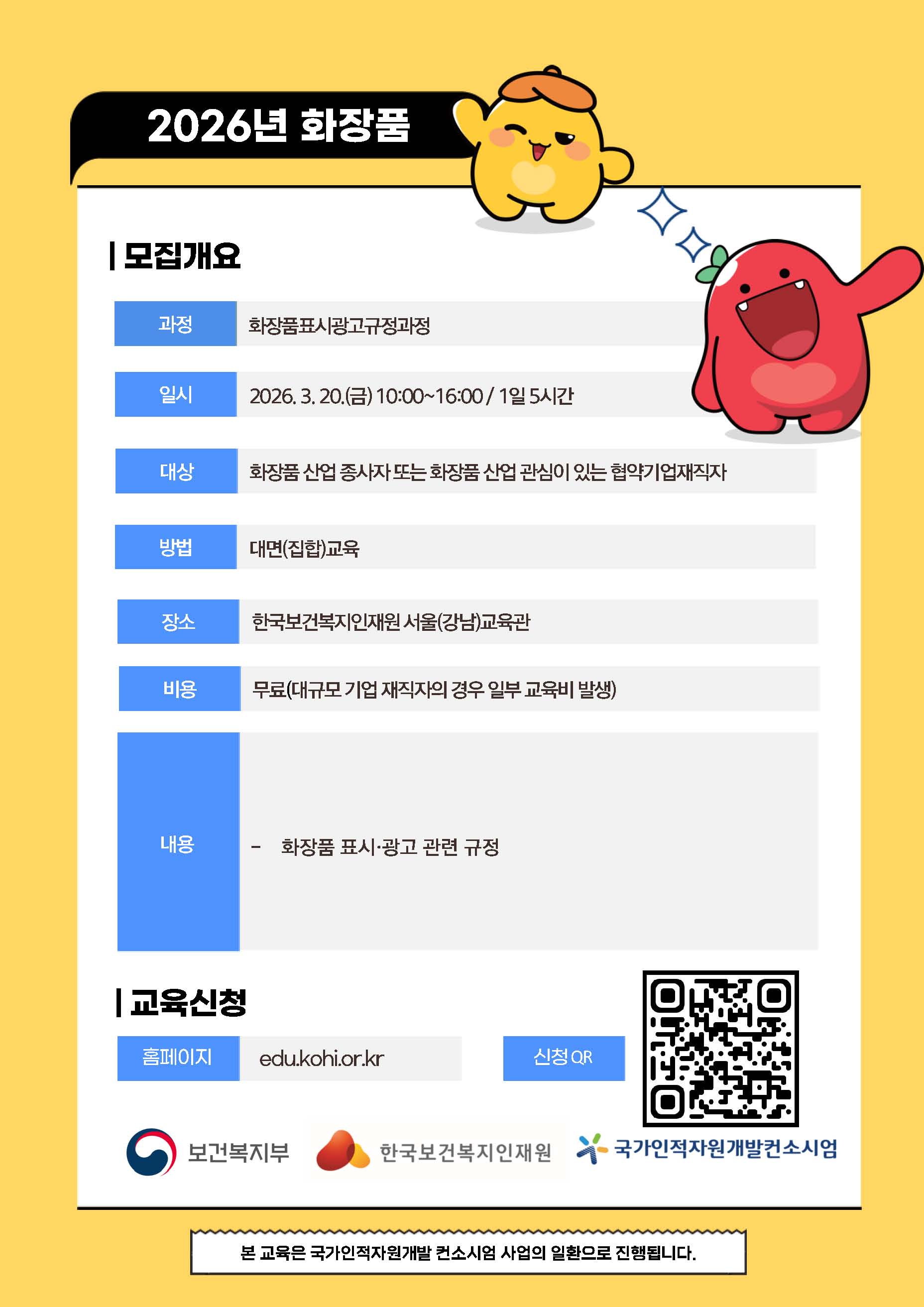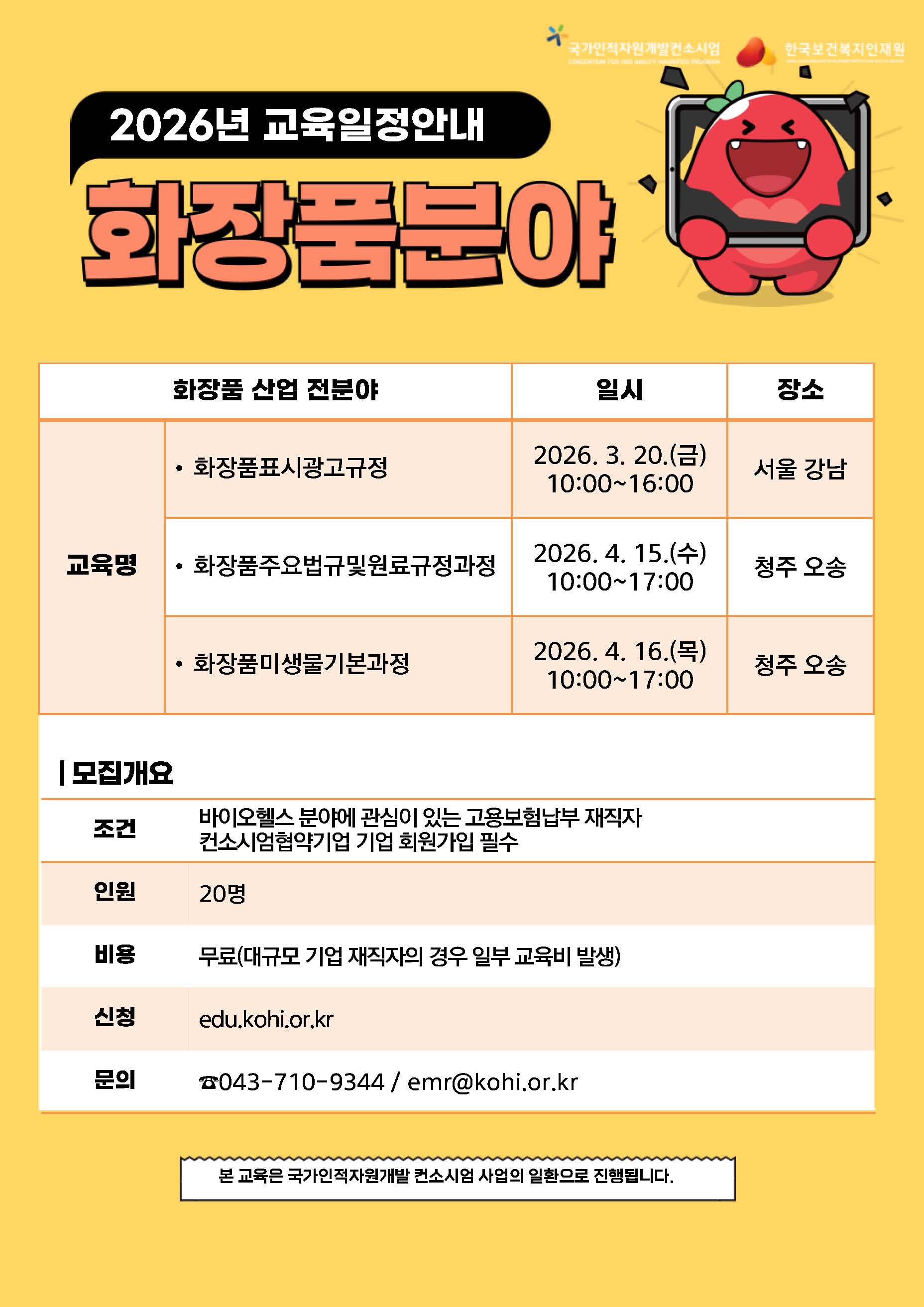 [한국보건복지인재원] 2026년 화장품 분야 교육과정 안내 (3-4월)