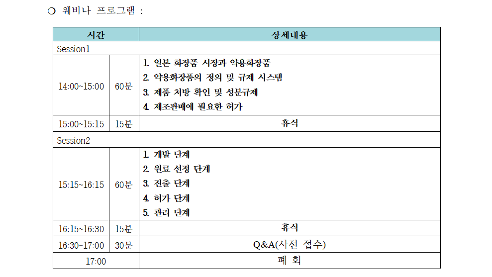 2. 우리 협회에서는『일본 약용 화장품 왜 지금인가? 한국 화장품의 현지화 고도화 전략 웨비나』를 아래와 같이 유료로 개최할 예정이오니, 관심있는 분들은 사전등록 링크를 통해 신청하여 주시기 바랍니다.