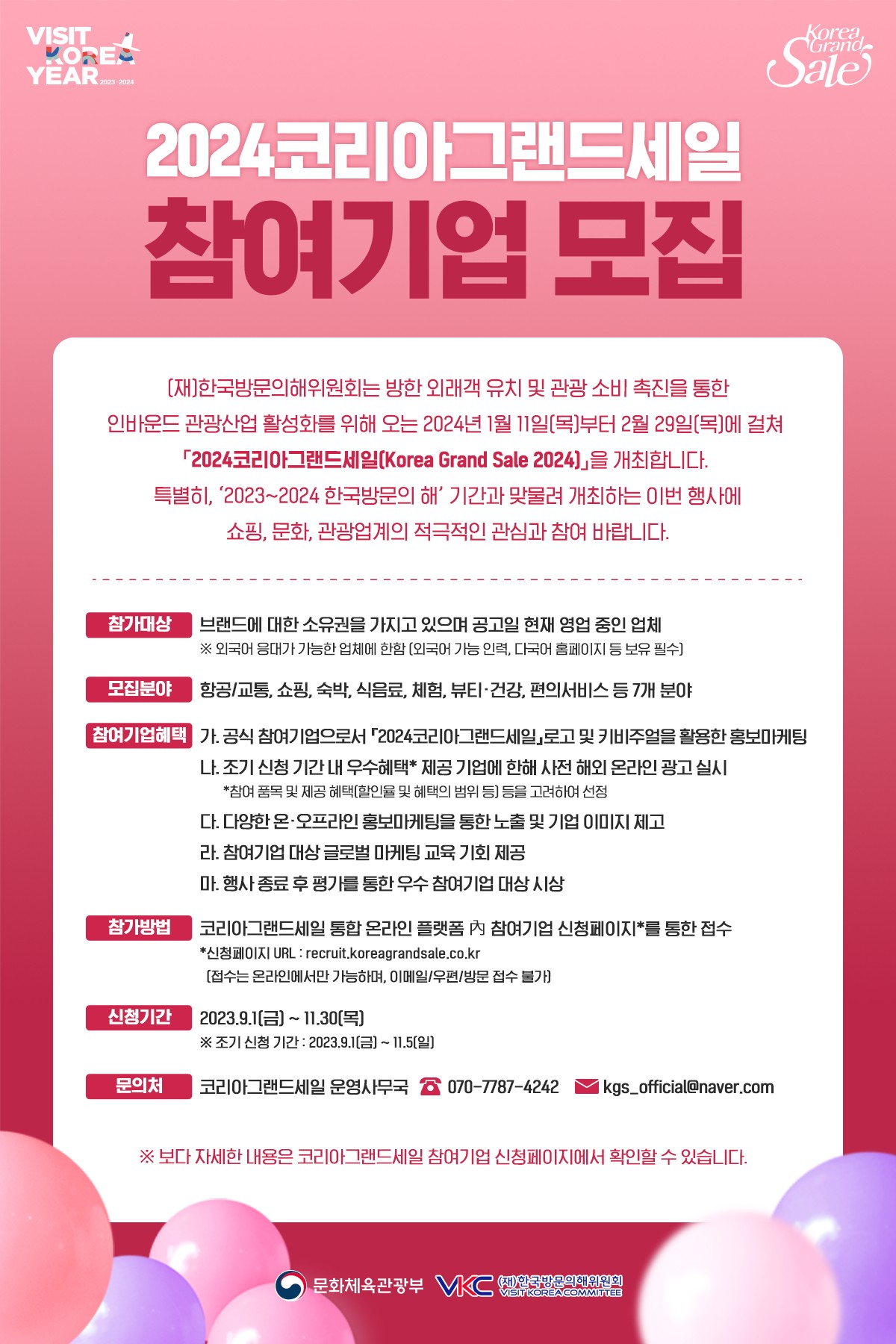 (한국방문위원회)2024 코리아그랜드 세일(Korea Grand Sale) 참여기업 모집 안내
